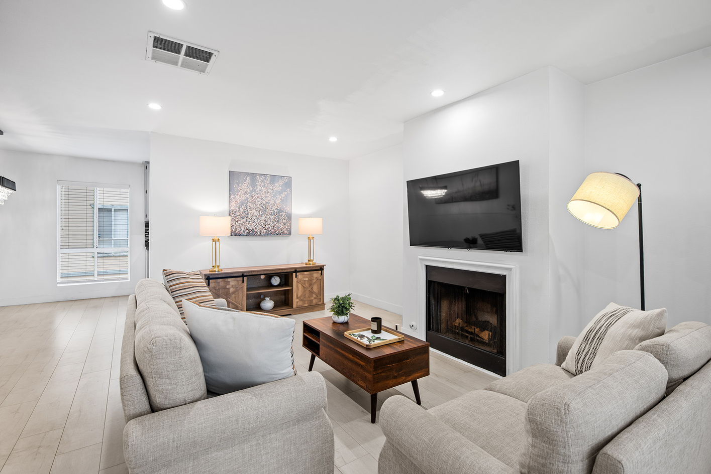 Welcome to this great Chatsworth townhouse offering an open living spaces and a great location close to parks, shopping, and major freeways. The main level features a living room with a cozy fireplace and sliding doors that open to a large patio - ideal for dining, entertaining, barbecuing, or relaxing outdoors. The kitchen includes ample storage, stainless steel appliances, and a spacious dining area with room for an eight-person table. A powder room is also located on this level. Upstairs, you’ll find two oversized bedrooms, both with high ceilings and large closets, along with two full bathrooms—one en-suite in the primary bedroom. The lower-level bonus room provides great flexibility. Use it as a home office, gym, creative space, storage area, or a TV/video game/movie room. Side-by-side laundry is also located on this level, along with direct access to the attached two-car finished garage. Recent improvements include new flooring throughout, LED recessed lighting, new kitchen appliances, and a new HVAC system. This small, well-run HOA community offers a sparkling pool, plenty of guest parking, and low HOA dues.Welcome to 9901 Independence