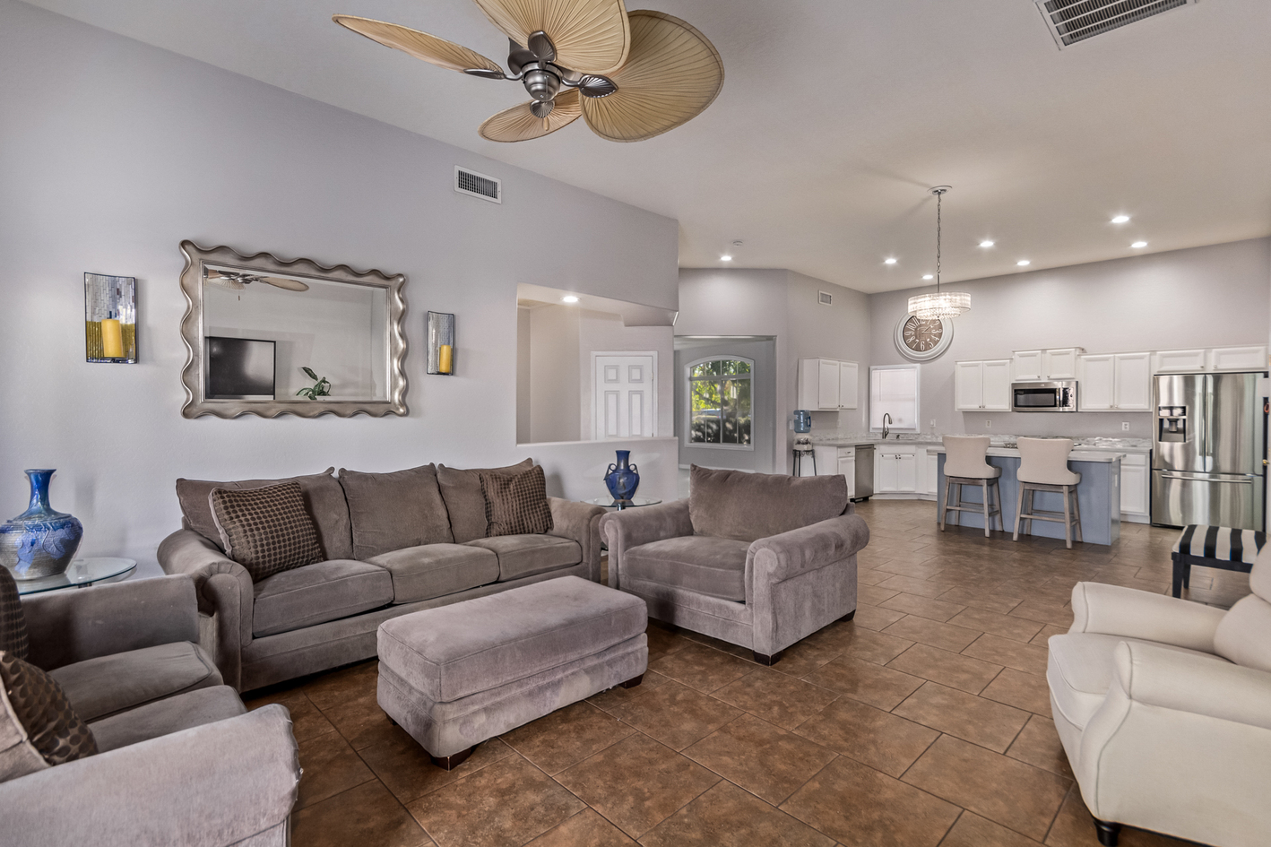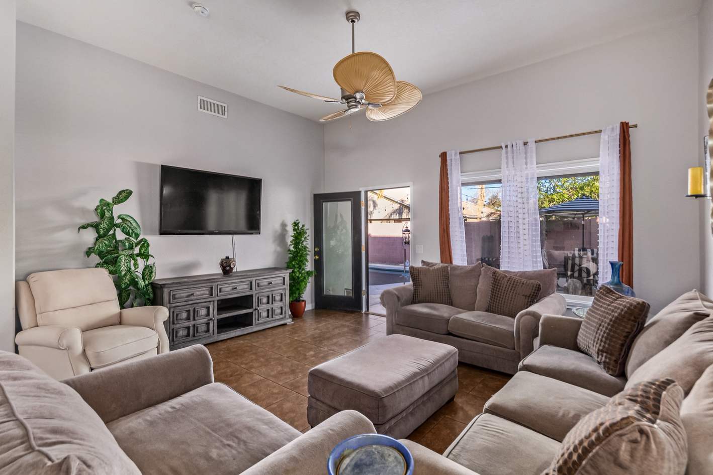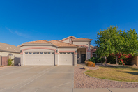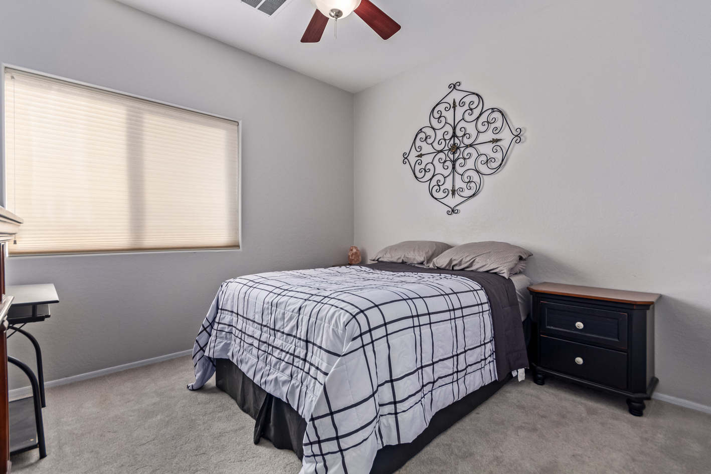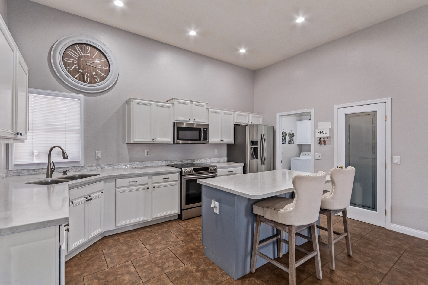 Welcome to this amazing home in the heart of Gilbert, AZ where modern living meets suburban charm! Step into this spacious home with over 1900 sq ft of stunning living space including 4 bedrooms, 2 bathrooms and an oversized, 3-car garage. The beautiful kitchen is ready to host your friends and family, with quartz counters, tile backsplash, a center island, and large walk-in pantry. The great room has tile throughout and a built in office nook, perfect for work from home or that after school home work. Separate formal dining/seating area. Primary bedroom has a separate tub and shower, dual sinks and walk-in closet with built in organizers. 2 of the 3 secondary bedrooms have walk-in closets. Step into the backyard oasis with a refreshing private pool, perfect for Arizona's sunny days.