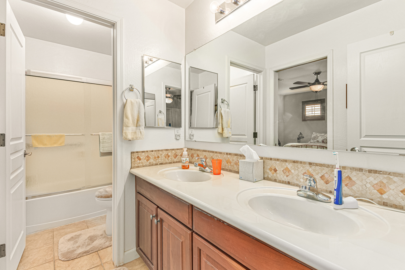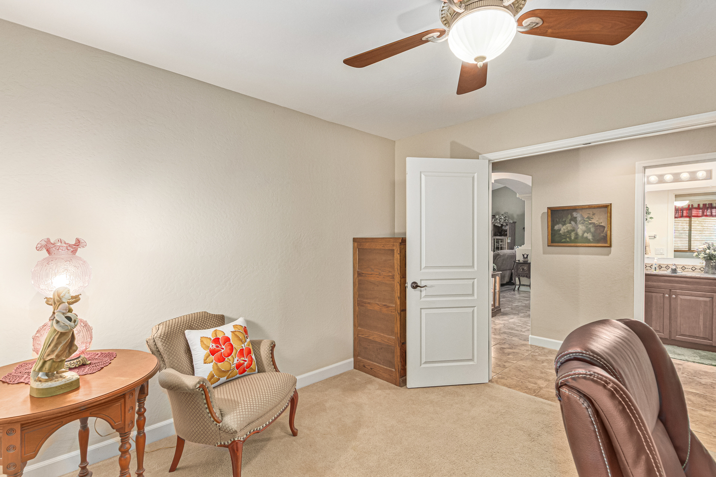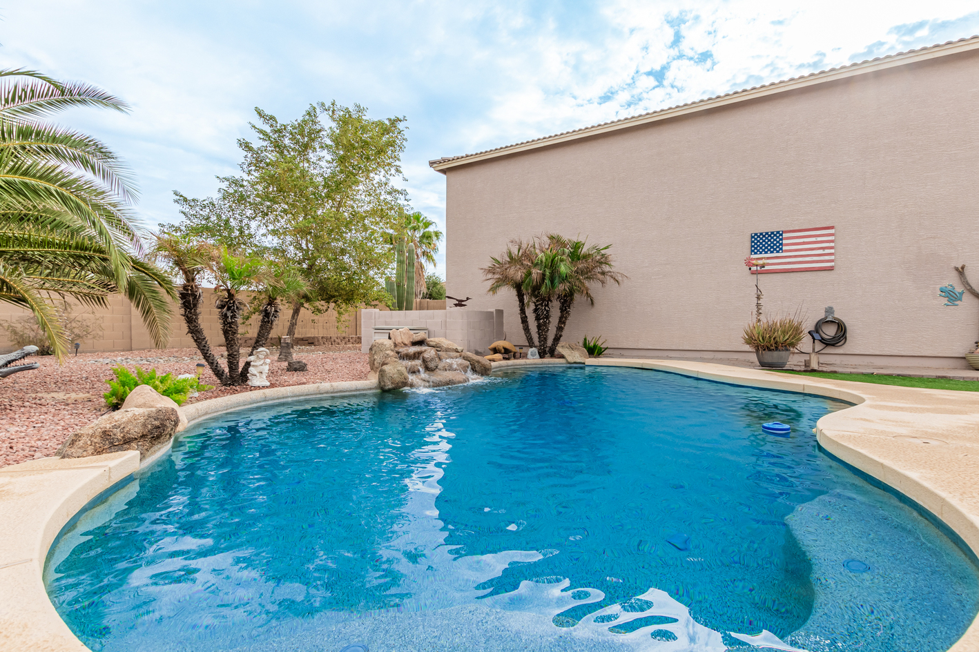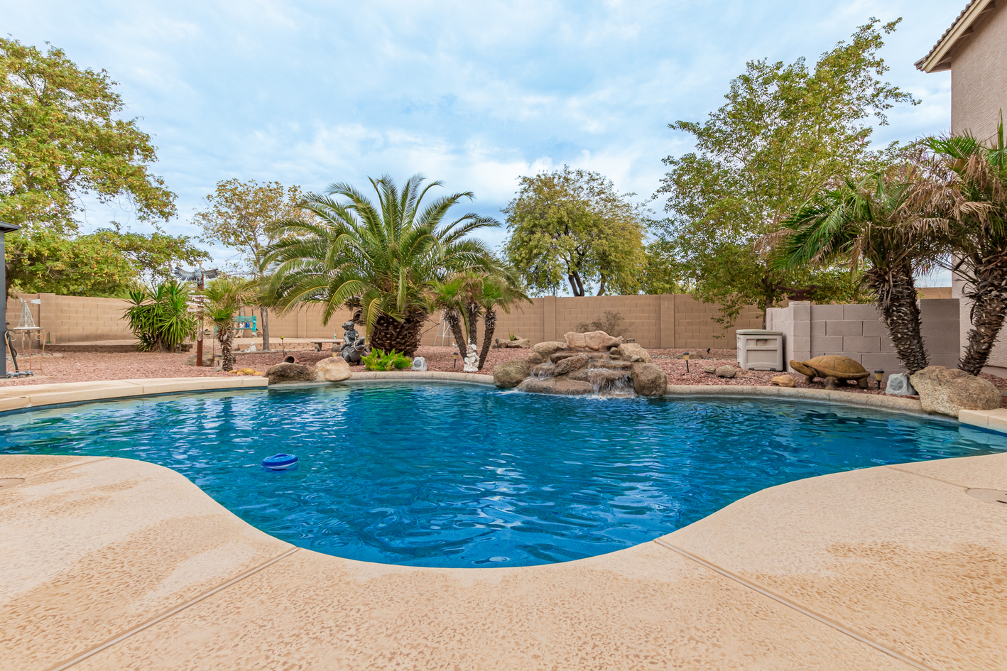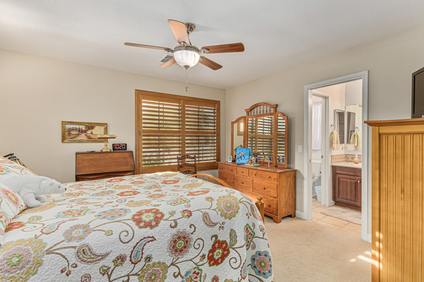 You'll love the main suite that highlights a sitting area with backyard access, a full bathroom & walk-in closet. Secondary bedrooms enjoy a Jack & Jill bathroom! The 3rd bathroom is conveniently located off the hallway. The detached RV garage has a 14' rollup door with opener and is 45' deep, features a workshop area at the rear of the garage. Escape to the backyard paradise that invites you to unwind & have fun! It boasts a full-length covered patio, pavers, artificial turf, a Gazebo, lots of seating areas, & a crystal blue pool. Don't miss the grandeur that awaits in every corner of this remarkable residence!