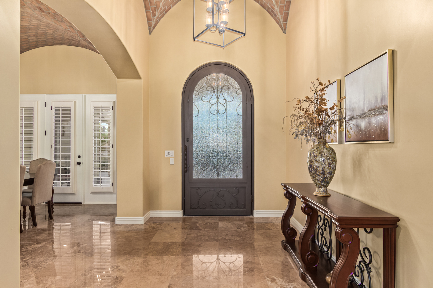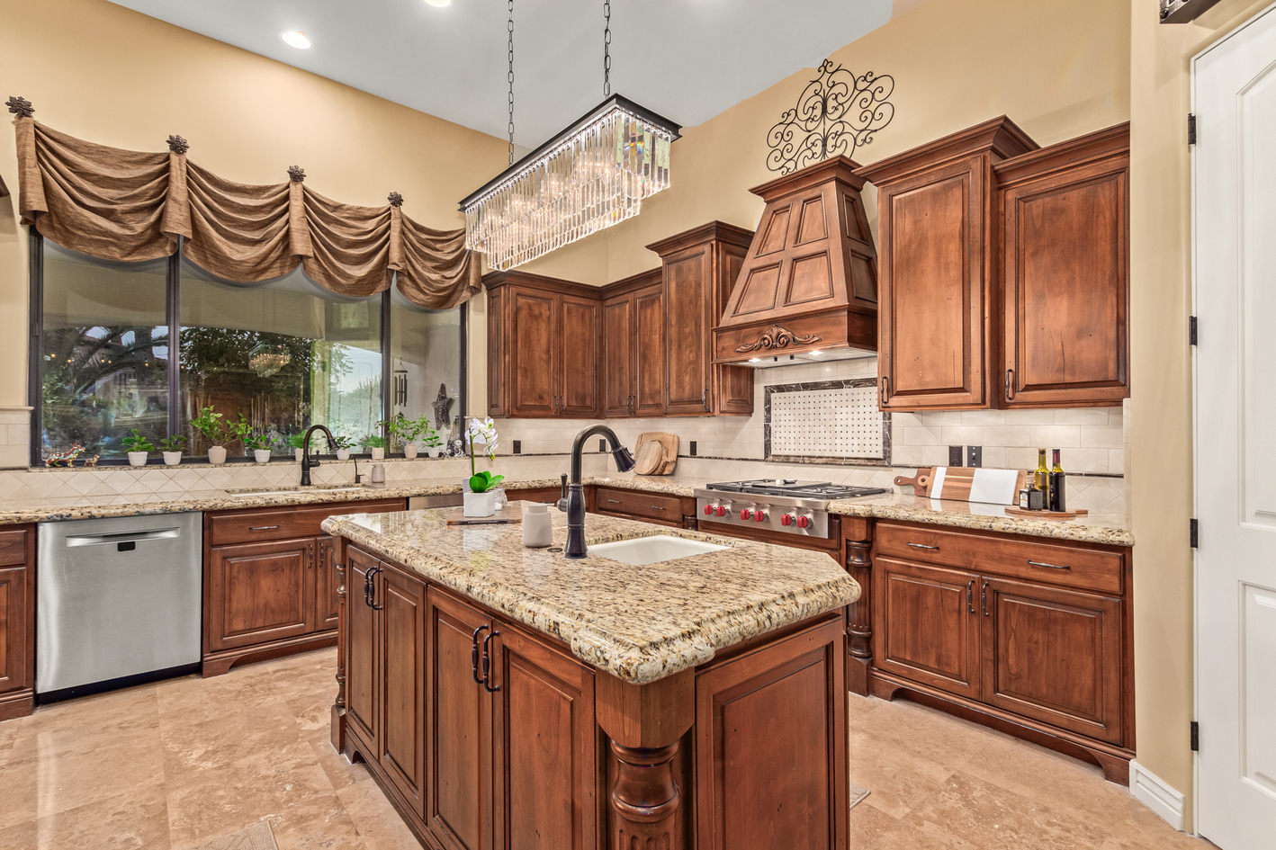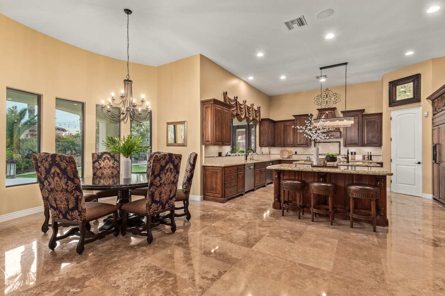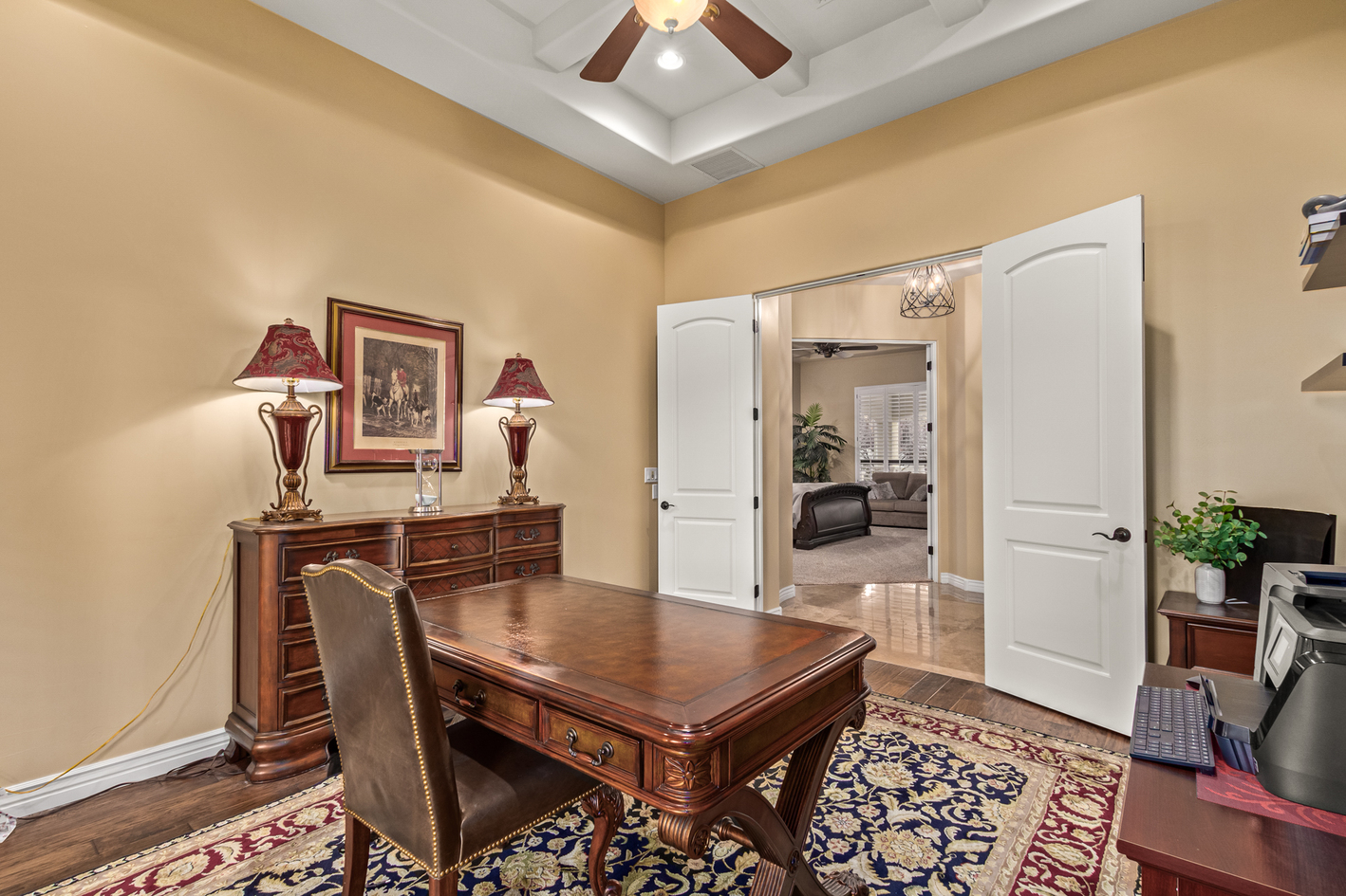 This meticulously kept single-level sanctuary offers an exquisite blend of comfortable living & serene surroundings~Exclusive, gated South Chandler boutique community~Tierra Linda has all Cul de Sac 1/2 acre homesites~A residence designed to host extraordinary gatherings~Offering a seamless flow from the front to the back~Custom builder known for design & unparalleled functionality~Split floor plan boasts 4 spacious bedrooms + office, & 4 baths~Heart of this home is Great room & Kitchen~Featuring double islands, wet bar & a suite of upgraded appliances~Comfort High Efficiency Climate contol~Expansive covered patio w/ misters, café lighting, pool, spa, outdoor kitchen & 2 way fireplace~4-car Garage boasting built-in cabinets, upper storage & pristine epoxy floors~There is Located in a limited, exclusive enclave of just three streets, this North-South positioned home provides the epitome of refined living. Curbside, you are greeted by an extra-large gated courtyard adorned with majestic date palms and assorted flowering shrubs. The tranquil sounds of a fountain create an oasis-like ambiance, inviting you into the interior through large Canterra surrounded Iron grand entry door, which can be opened for the air and sounds of birds and water, as well as the doors, with Phantom screens, from the adjacent office, guest bedroom and dining rooms. The grandeur continues indoors with a spacious master wing, gracefully divided from other bedrooms by a great room and a chef's kitchen adorned with double islands and a wet bar. The open floor plan seamlessly connects gathering, den, and dining spaces, creating an ideal ambiance for both relaxation and entertainment. All bedrooms offer en-suite luxury and generous walk-in closets, ensuring privacy and convenience for residents and guests alike. The heart of this home is a grand open great room and kitchen, featuring double islands, a sleek wet bar, and a suite of upgraded appliances including Wolf, Monogram, Bosch, and Scotsman. This space effortlessly merges elegance with practicality, perfect for daily living and lavish entertaining. Experience comfort without compromise, courtesy of 20 Seer High Efficiency AC units and multi-zoned climate control, ensuring ideal temperatures throughout the home. Escape to the covered patio, an expansive haven complete with misters (making it about 15 degrees cooler for summer entertaining), enchanting café lighting, a refreshing pool, spa, and a separate master bedroom garden with its own hot tub. Revel in the privacy of this outdoor oasis, further enhanced by an outdoor kitchen and a captivating two-way fireplace. Experience resort-style living with a southside pool that basks in sunlight throughout the day. Car enthusiasts will delight in the meticulously maintained 4-car side-facing garage boasting built-in cabinets, upper storage, new garage door equiptment, space for additional fridge or freezer and pristine epoxy floors, ensuring an immaculate space for your prized vehicles. The sellers are allowing the built in ET unit in the Gathering room to convey as well as storage shed, discretely positioned on the west side of the house behind the RV gate to the backyard.