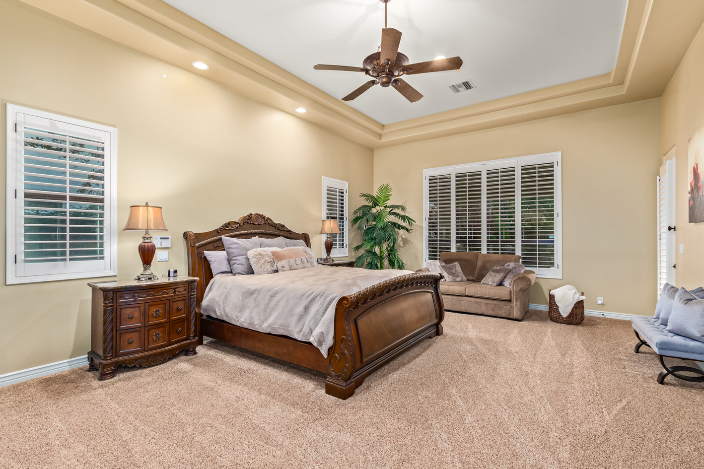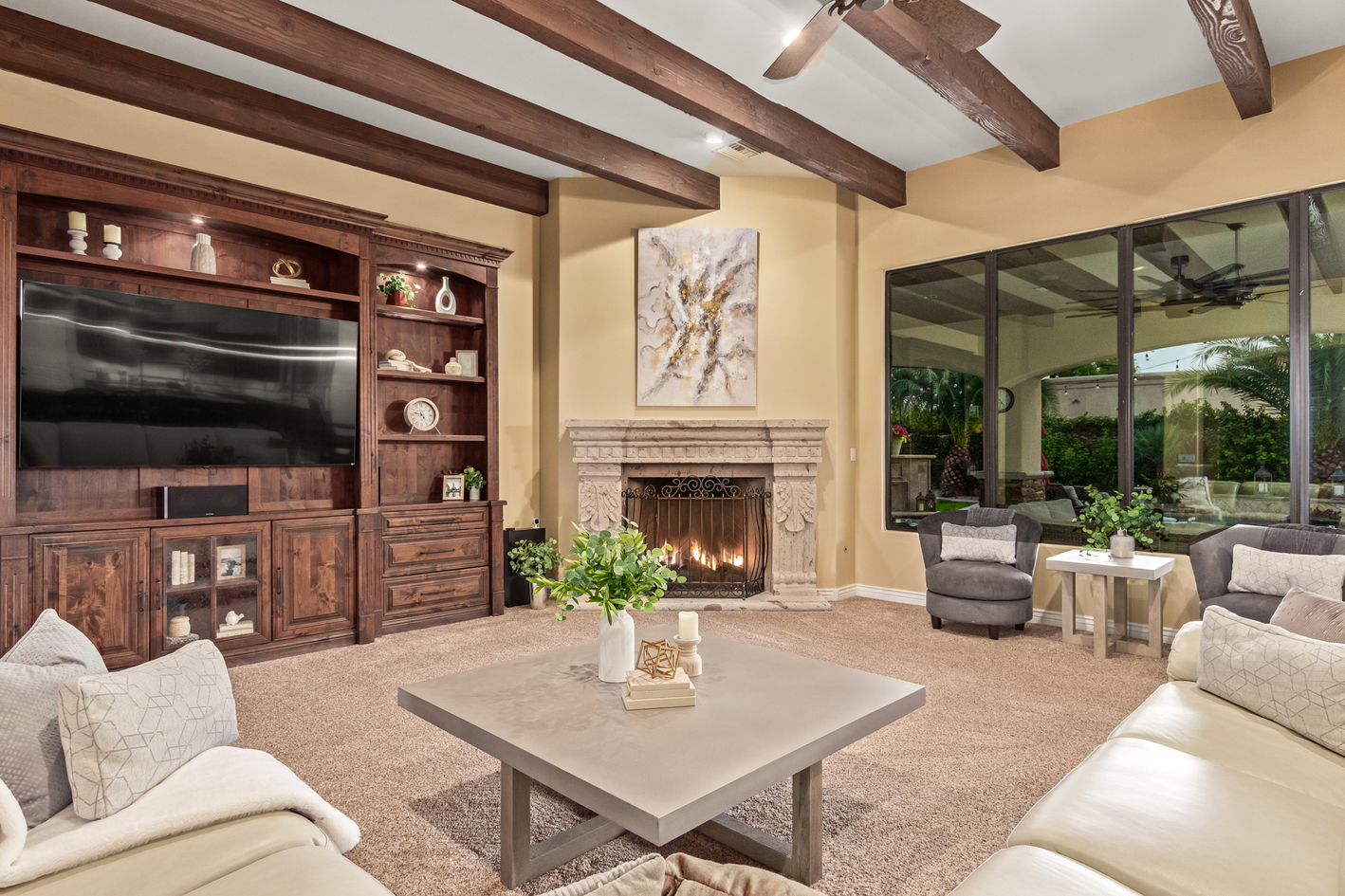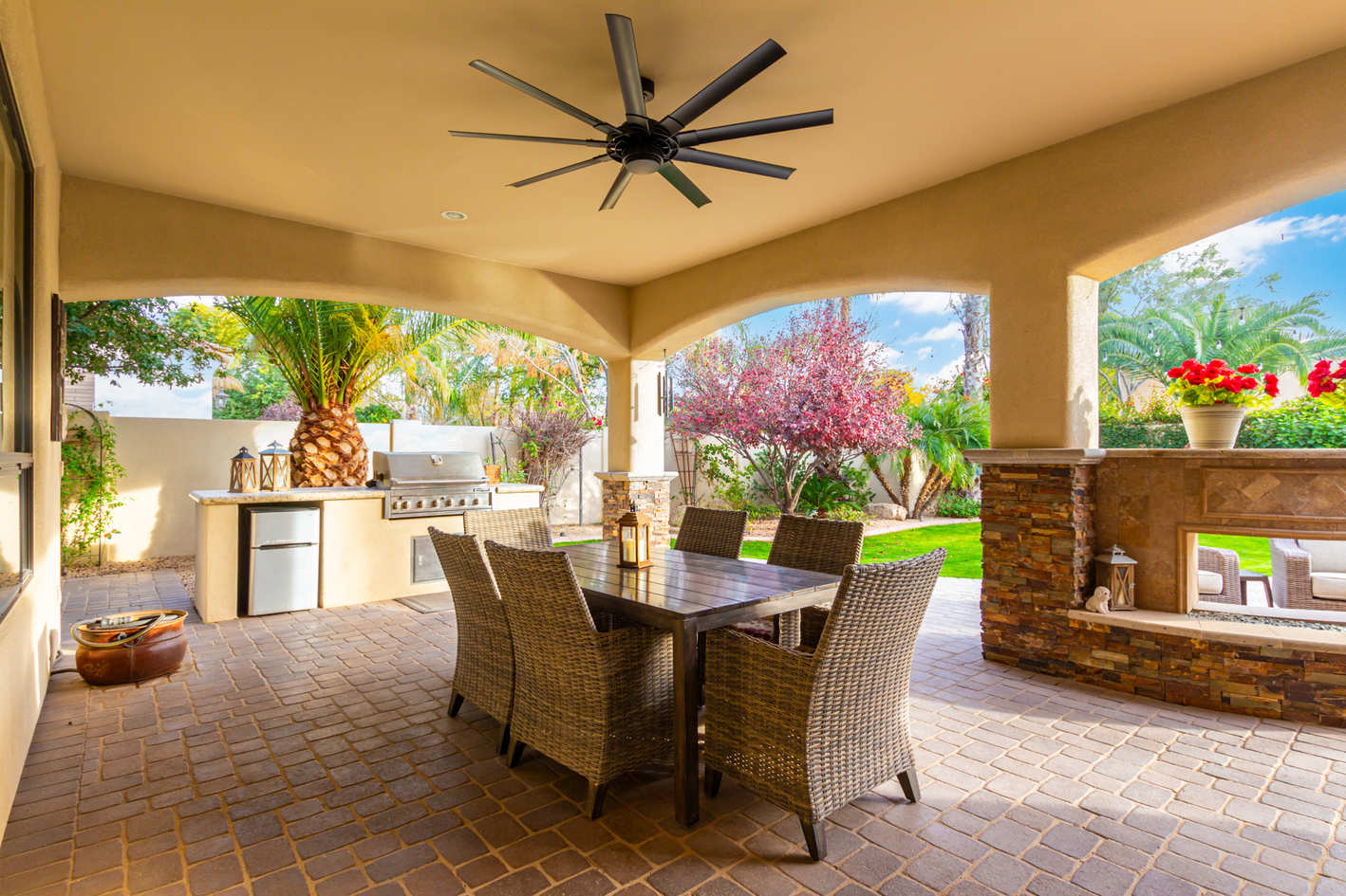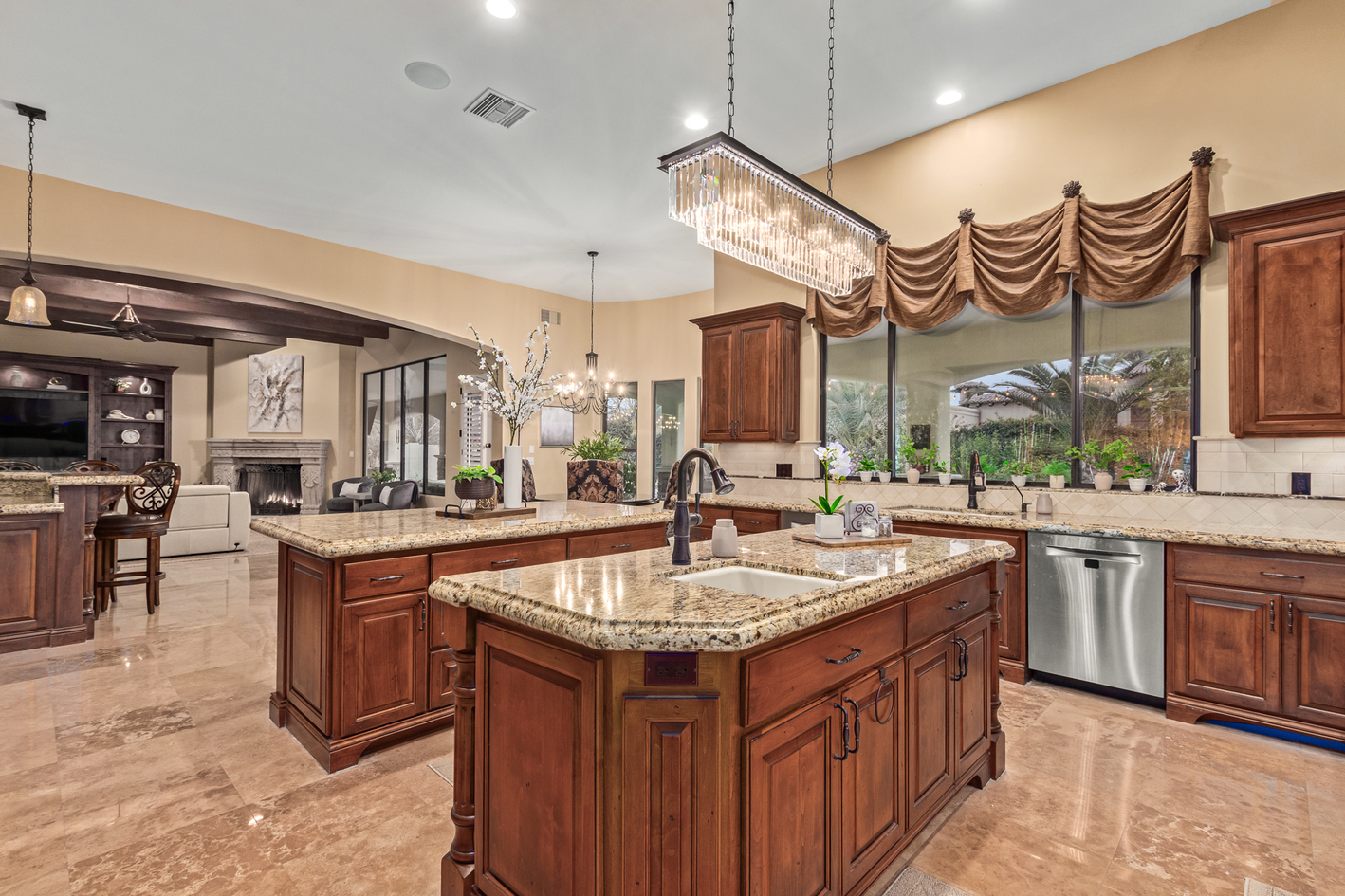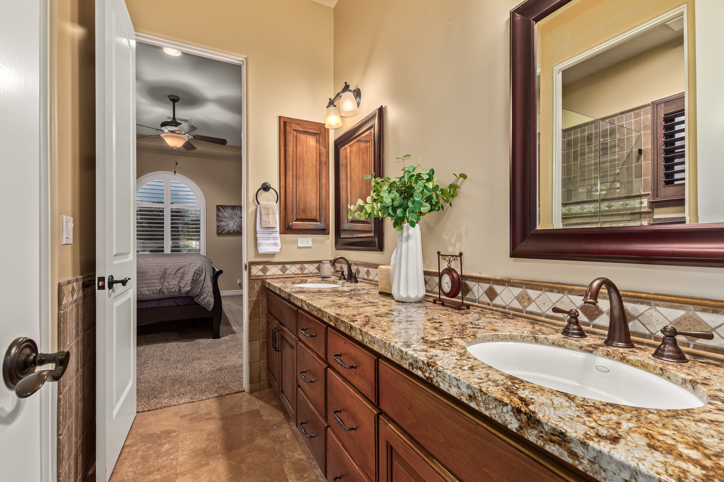 This meticulously kept single-level sanctuary offers an exquisite blend of comfortable living & serene surroundings~Exclusive, gated South Chandler boutique community~Tierra Linda has all Cul de Sac 1/2 acre homesites~A residence designed to host extraordinary gatherings~Offering a seamless flow from the front to the back~Custom builder known for design & unparalleled functionality~Split floor plan boasts 4 spacious bedrooms + office, & 4 baths~Heart of this home is Great room & Kitchen~Featuring double islands, wet bar & a suite of upgraded appliances~Comfort High Efficiency Climate contol~Expansive covered patio w/ misters, café lighting, pool, spa, outdoor kitchen & 2 way fireplace~4-car Garage boasting built-in cabinets, upper storage & pristine epoxy floors~There is Located in a limited, exclusive enclave of just three streets, this North-South positioned home provides the epitome of refined living. Curbside, you are greeted by an extra-large gated courtyard adorned with majestic date palms and assorted flowering shrubs. The tranquil sounds of a fountain create an oasis-like ambiance, inviting you into the interior through large Canterra surrounded Iron grand entry door, which can be opened for the air and sounds of birds and water, as well as the doors, with Phantom screens, from the adjacent office, guest bedroom and dining rooms. The grandeur continues indoors with a spacious master wing, gracefully divided from other bedrooms by a great room and a chef's kitchen adorned with double islands and a wet bar. The open floor plan seamlessly connects gathering, den, and dining spaces, creating an ideal ambiance for both relaxation and entertainment. All bedrooms offer en-suite luxury and generous walk-in closets, ensuring privacy and convenience for residents and guests alike. The heart of this home is a grand open great room and kitchen, featuring double islands, a sleek wet bar, and a suite of upgraded appliances including Wolf, Monogram, Bosch, and Scotsman. This space effortlessly merges elegance with practicality, perfect for daily living and lavish entertaining. Experience comfort without compromise, courtesy of 20 Seer High Efficiency AC units and multi-zoned climate control, ensuring ideal temperatures throughout the home. Escape to the covered patio, an expansive haven complete with misters (making it about 15 degrees cooler for summer entertaining), enchanting café lighting, a refreshing pool, spa, and a separate master bedroom garden with its own hot tub. Revel in the privacy of this outdoor oasis, further enhanced by an outdoor kitchen and a captivating two-way fireplace. Experience resort-style living with a southside pool that basks in sunlight throughout the day. Car enthusiasts will delight in the meticulously maintained 4-car side-facing garage boasting built-in cabinets, upper storage, new garage door equiptment, space for additional fridge or freezer and pristine epoxy floors, ensuring an immaculate space for your prized vehicles. The sellers are allowing the built in ET unit in the Gathering room to convey as well as storage shed, discretely positioned on the west side of the house behind the RV gate to the backyard.