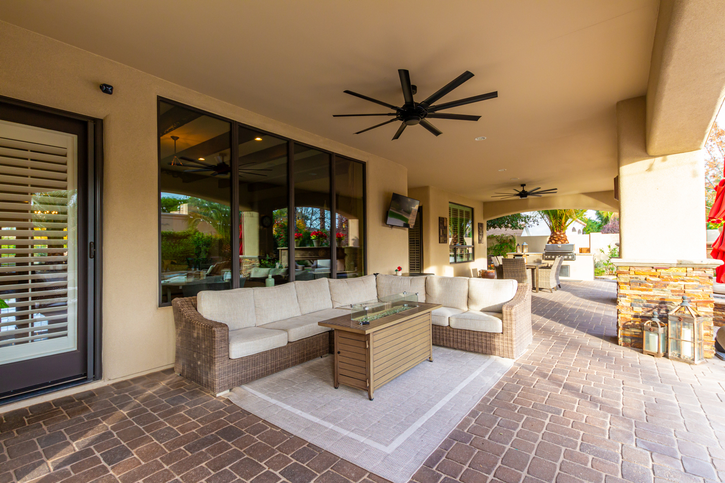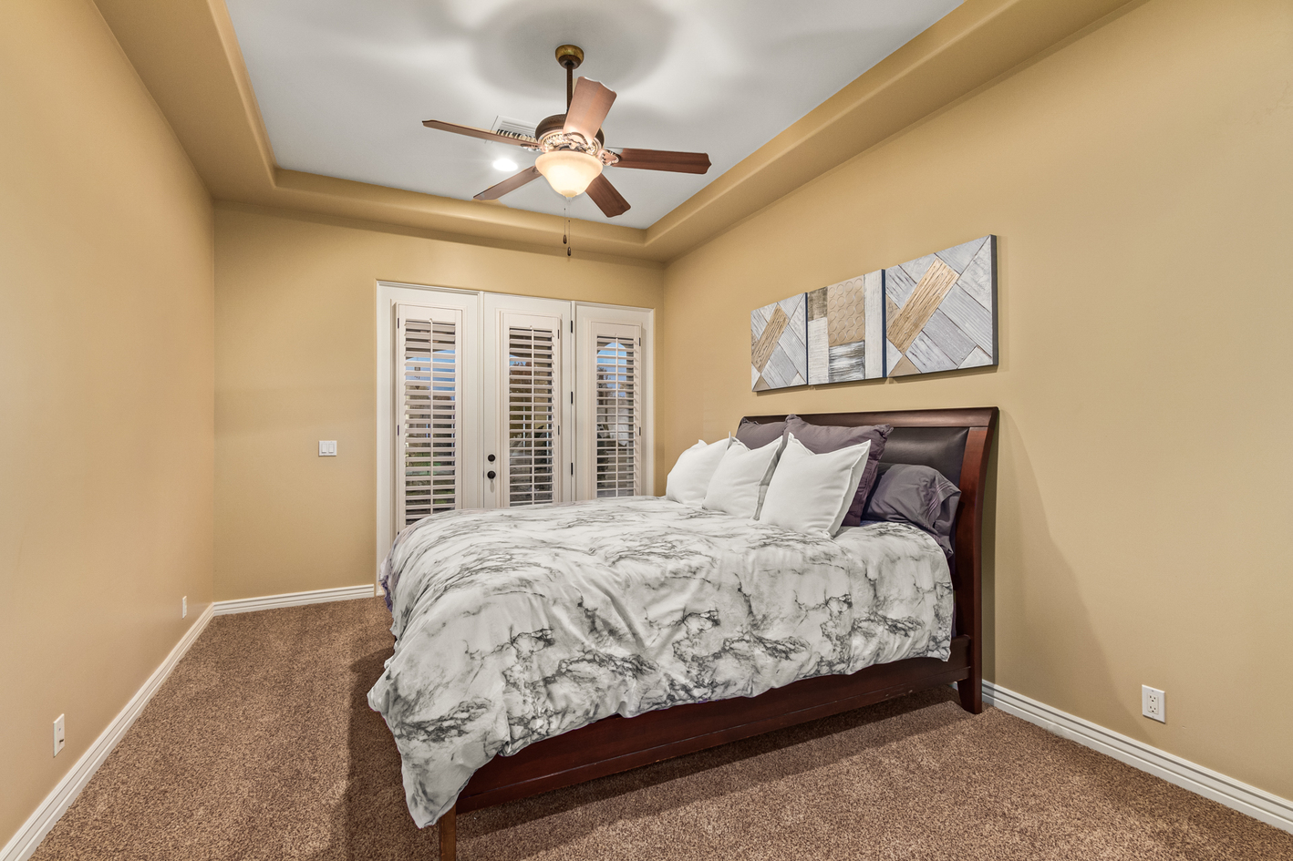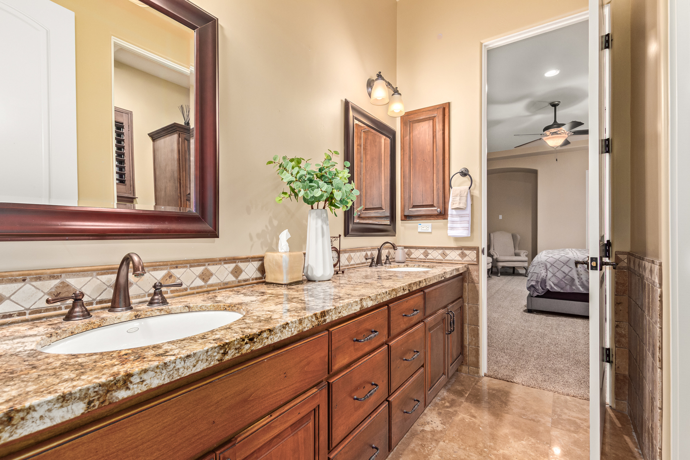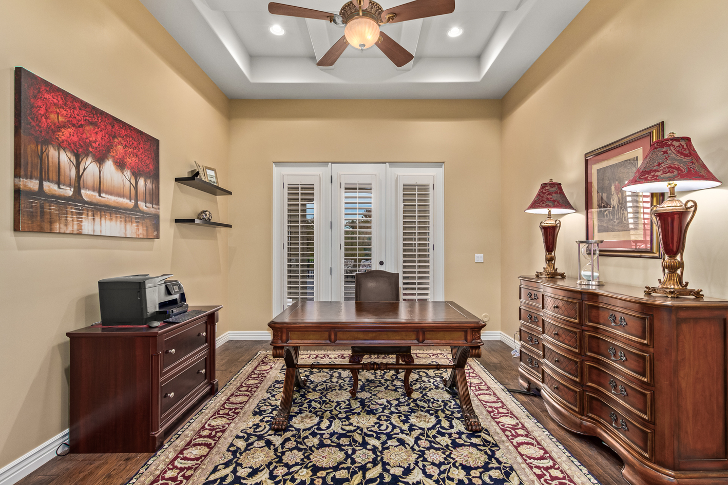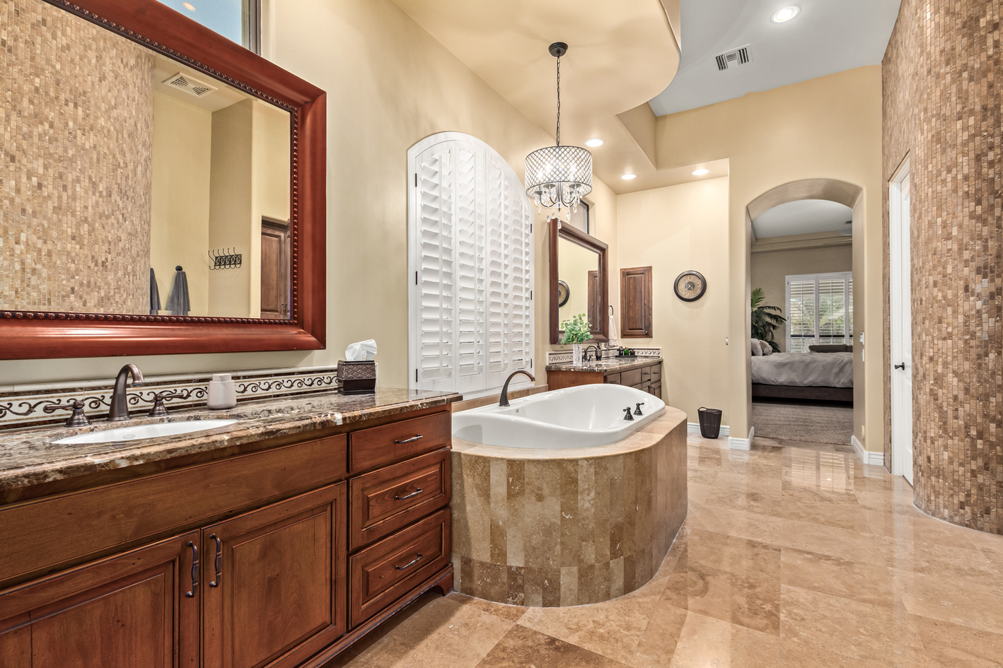 This meticulously kept single-level sanctuary offers an exquisite blend of comfortable living & serene surroundings~Exclusive, gated South Chandler boutique community~Tierra Linda has all Cul de Sac 1/2 acre homesites~A residence designed to host extraordinary gatherings~Offering a seamless flow from the front to the back~Custom builder known for design & unparalleled functionality~Split floor plan boasts 4 spacious bedrooms + office, & 4 baths~Heart of this home is Great room & Kitchen~Featuring double islands, wet bar & a suite of upgraded appliances~Comfort High Efficiency Climate contol~Expansive covered patio w/ misters, café lighting, pool, spa, outdoor kitchen & 2 way fireplace~4-car Garage boasting built-in cabinets, upper storage & pristine epoxy floors~There is Located in a limited, exclusive enclave of just three streets, this North-South positioned home provides the epitome of refined living. Curbside, you are greeted by an extra-large gated courtyard adorned with majestic date palms and assorted flowering shrubs. The tranquil sounds of a fountain create an oasis-like ambiance, inviting you into the interior through large Canterra surrounded Iron grand entry door, which can be opened for the air and sounds of birds and water, as well as the doors, with Phantom screens, from the adjacent office, guest bedroom and dining rooms. The grandeur continues indoors with a spacious master wing, gracefully divided from other bedrooms by a great room and a chef's kitchen adorned with double islands and a wet bar. The open floor plan seamlessly connects gathering, den, and dining spaces, creating an ideal ambiance for both relaxation and entertainment. All bedrooms offer en-suite luxury and generous walk-in closets, ensuring privacy and convenience for residents and guests alike. The heart of this home is a grand open great room and kitchen, featuring double islands, a sleek wet bar, and a suite of upgraded appliances including Wolf, Monogram, Bosch, and Scotsman. This space effortlessly merges elegance with practicality, perfect for daily living and lavish entertaining. Experience comfort without compromise, courtesy of 20 Seer High Efficiency AC units and multi-zoned climate control, ensuring ideal temperatures throughout the home. Escape to the covered patio, an expansive haven complete with misters (making it about 15 degrees cooler for summer entertaining), enchanting café lighting, a refreshing pool, spa, and a separate master bedroom garden with its own hot tub. Revel in the privacy of this outdoor oasis, further enhanced by an outdoor kitchen and a captivating two-way fireplace. Experience resort-style living with a southside pool that basks in sunlight throughout the day. Car enthusiasts will delight in the meticulously maintained 4-car side-facing garage boasting built-in cabinets, upper storage, new garage door equiptment, space for additional fridge or freezer and pristine epoxy floors, ensuring an immaculate space for your prized vehicles. The sellers are allowing the built in ET unit in the Gathering room to convey as well as storage shed, discretely positioned on the west side of the house behind the RV gate to the backyard.