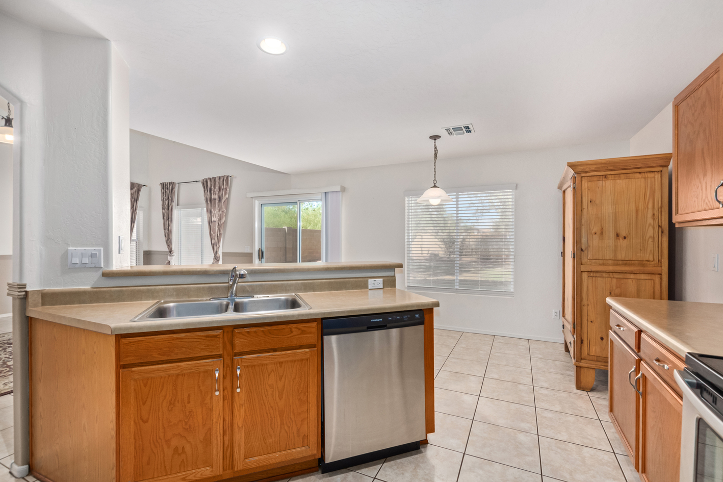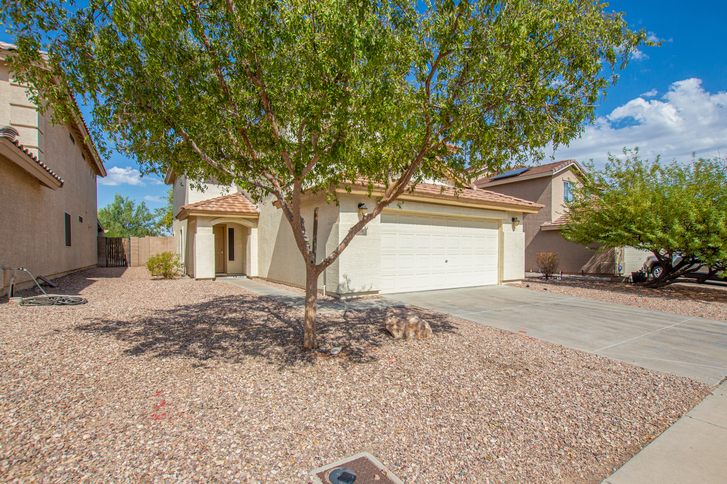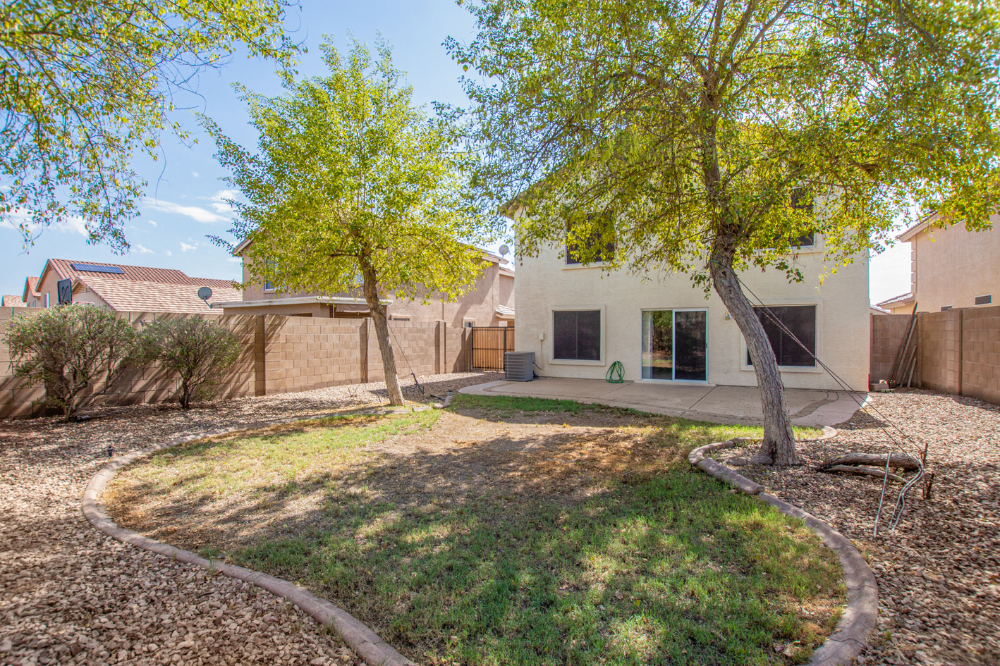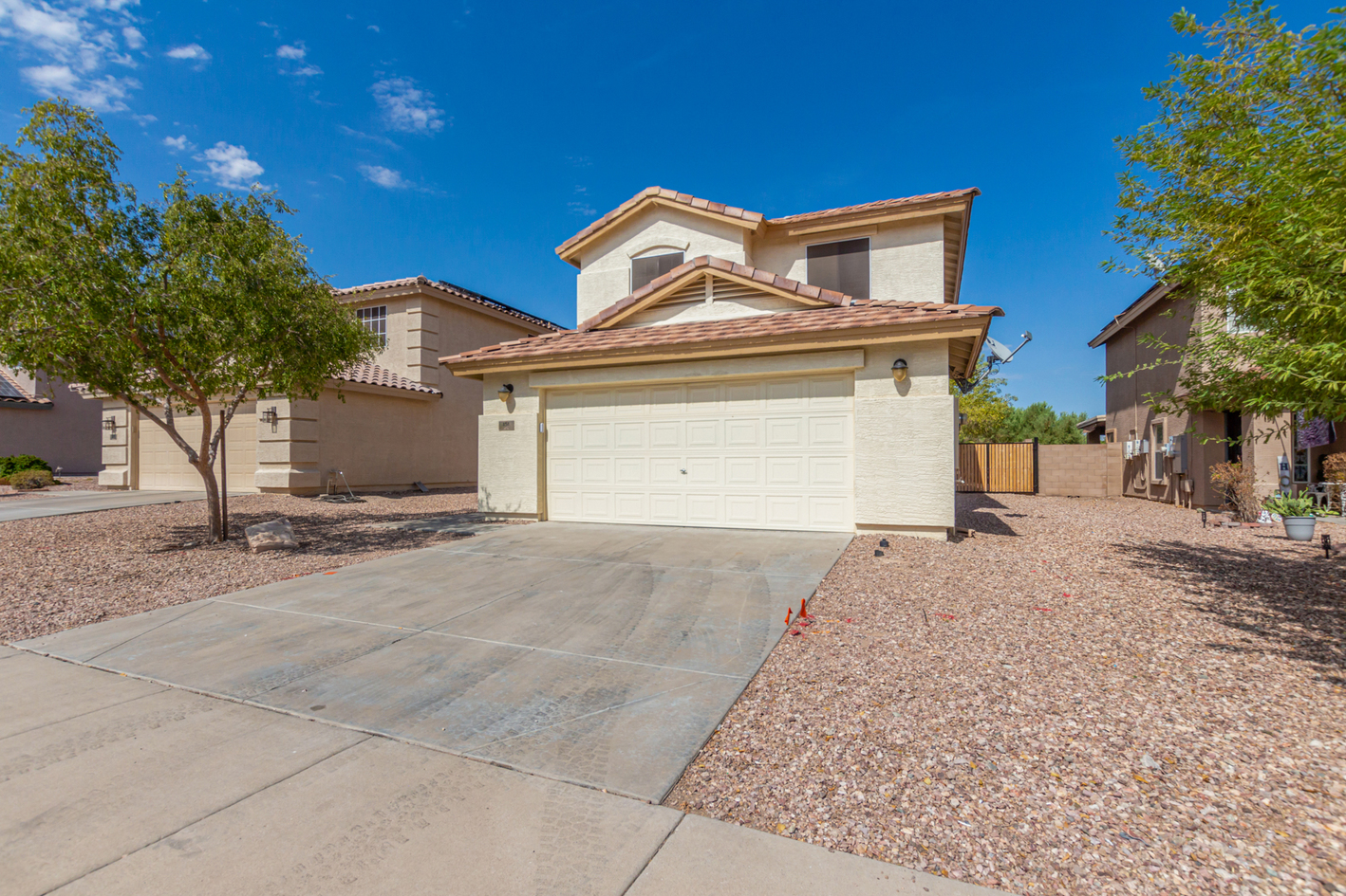 View Virtual TourWelcome to this charming 2-story home! From the RV gate to the spacious living room with soaring ceilings, this house is a blend of convenience and style. Tile floors are strategically placed throughout the main living areas. The kitchen is a chef's dream, complete with ample cabinetry, SS appliances, and a peninsula with a breakfast bar. The main bedroom offers a private bathroom. Walk-in closets are featured in most bedrooms. Full Bed & Bathroom on main level. Washer and dryer are included! Sizable backyard features a patio and shade trees, an ideal setting for outdoor entertaining. There's even enough room to fit a pool or get creative. Minutes away from Sundance Golf Club and major freeways, this home offers easy commuting and access to leisure activities. Don't miss out on this one.