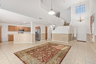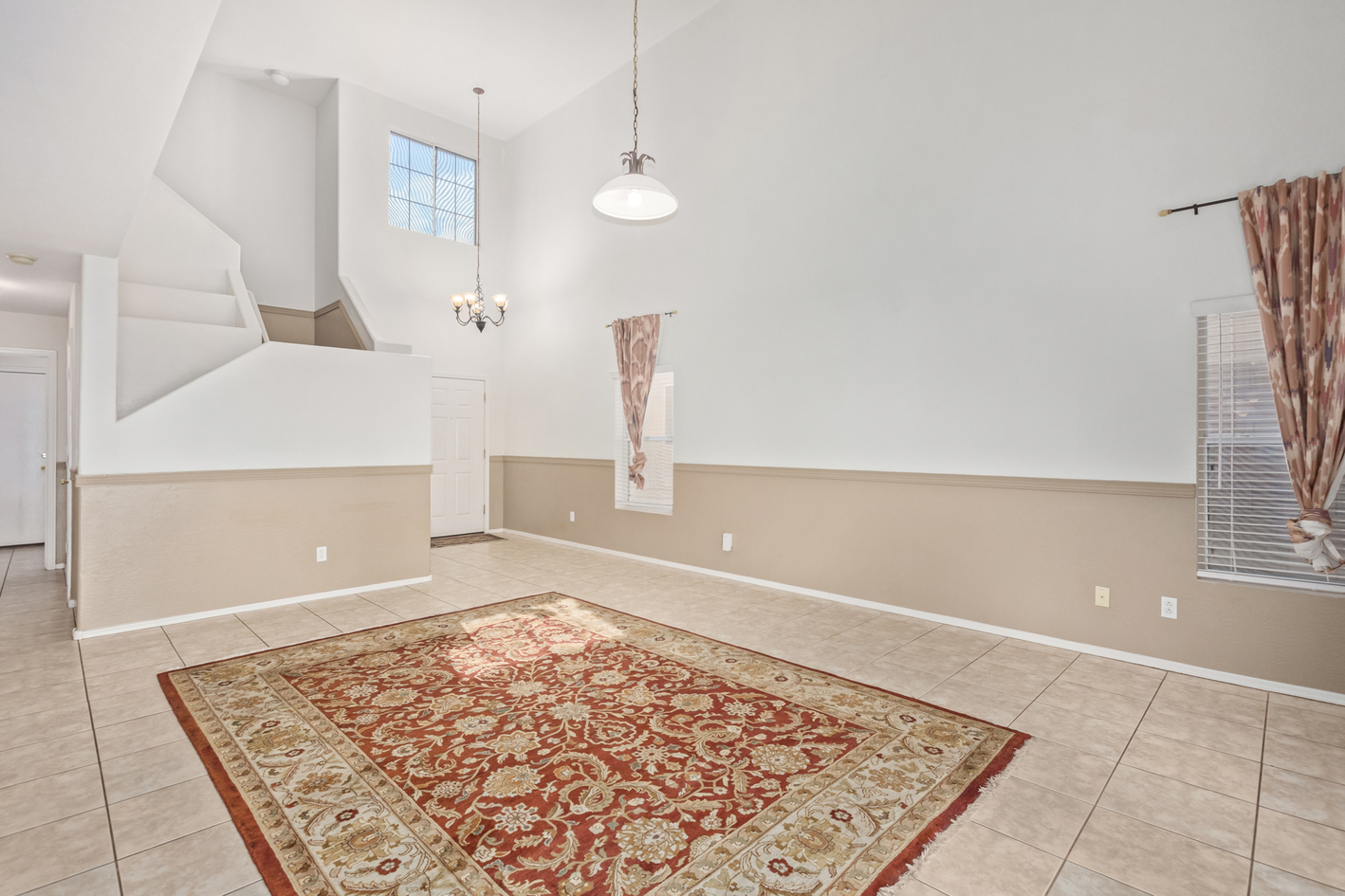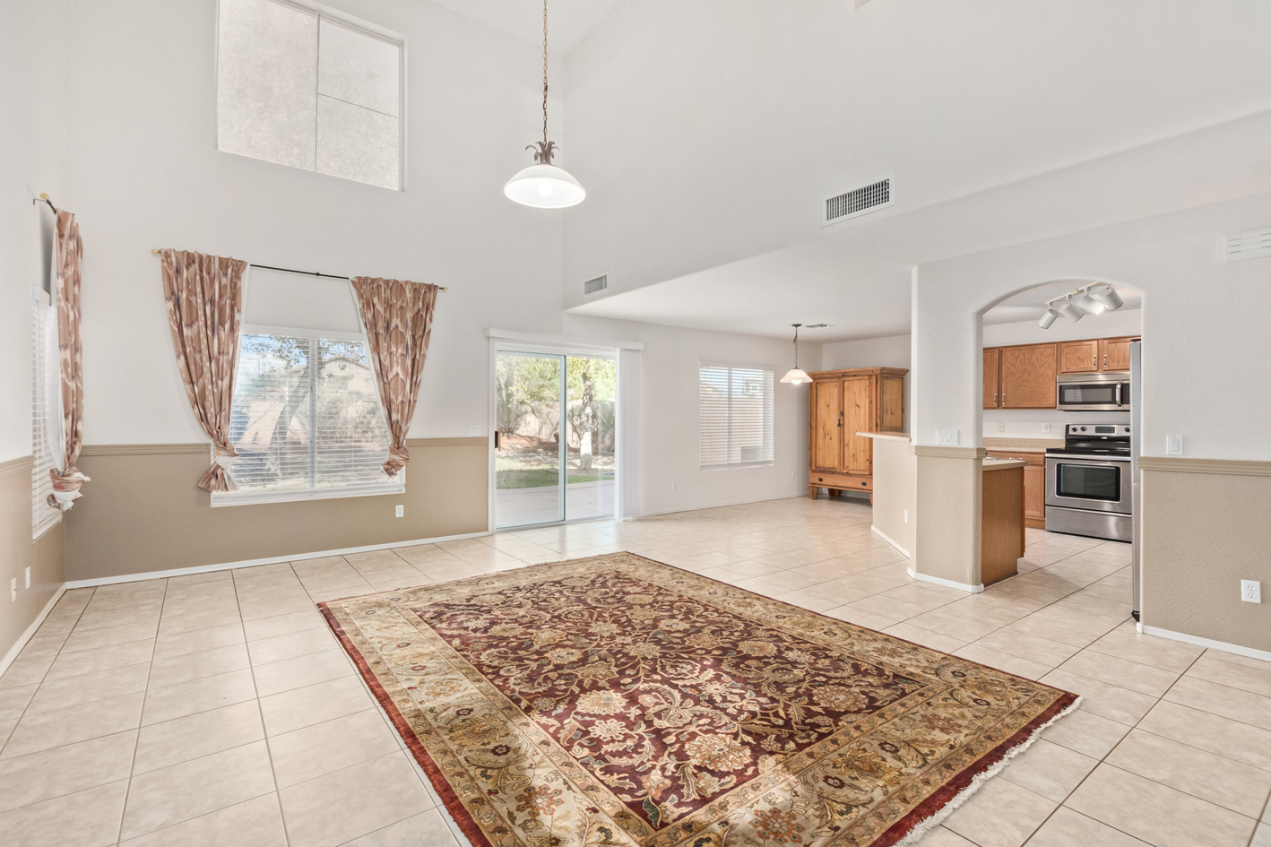 Welcome to this charming 2-story home! From the RV gate to the spacious living room with soaring ceilings, this house is a blend of convenience and style. Tile floors are strategically placed throughout the main living areas. The kitchen is a chef's dream, complete with ample cabinetry, SS appliances, and a peninsula with a breakfast bar. The main bedroom offers a private bathroom. Walk-in closets are featured in most bedrooms. Full Bed & Bathroom on main level. Washer and dryer are included! Sizable backyard features a patio and shade trees, an ideal setting for outdoor entertaining. There's even enough room to fit a pool or get creative. Minutes away from Sundance Golf Club and major freeways, this home offers easy commuting and access to leisure activities. Don't miss out on this one.