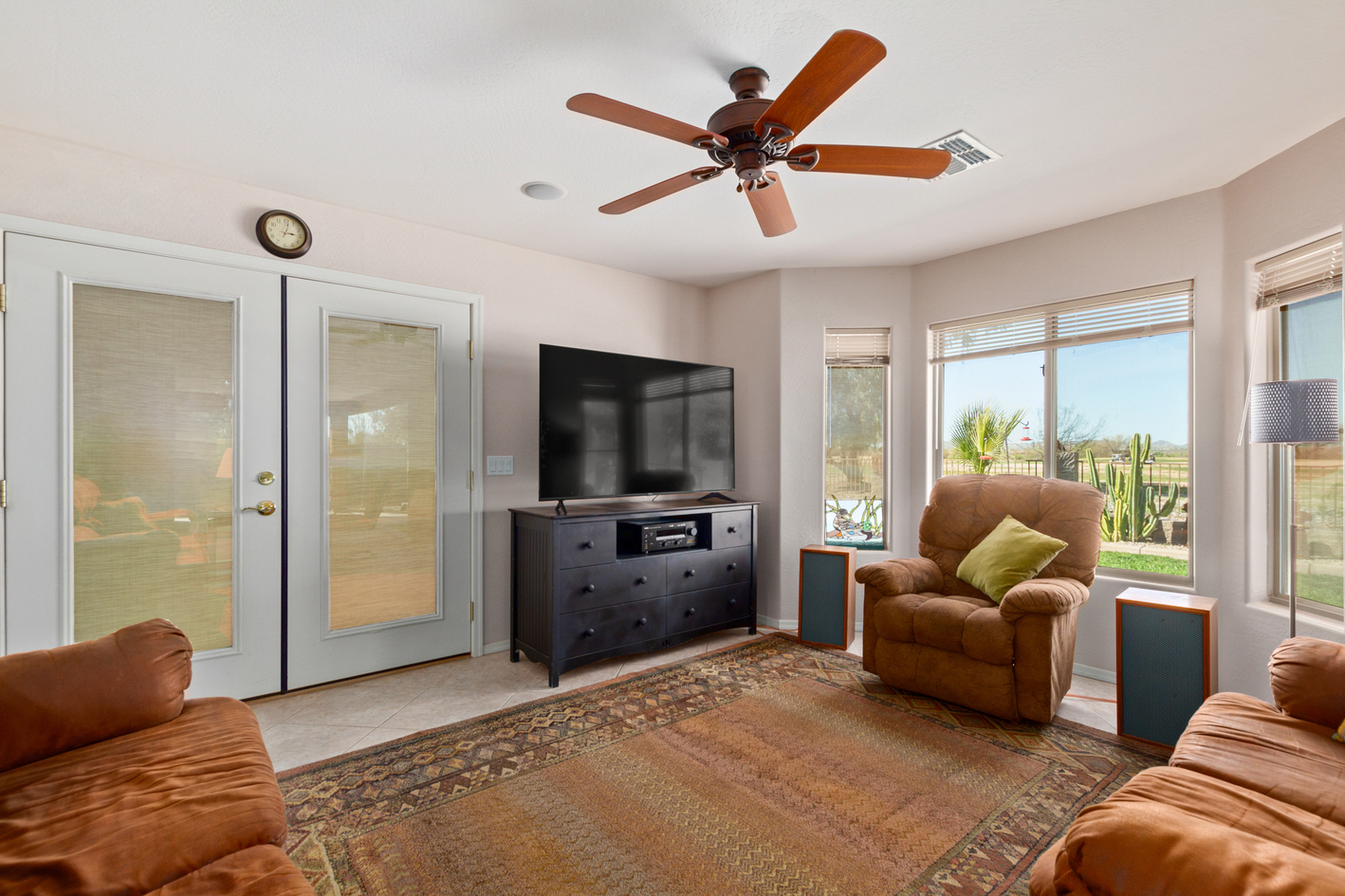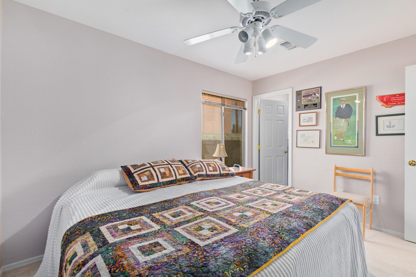 Welcome to this beautiful 2x6 constructed 2,342 square foot 3-car extended garages with OWNED Solar nestled perfectly on the 2nd fairway of Dave White Regional Golf Course. Discover tile flooring throughout, accompanied by vaulted ceilings that create an airy and inviting atmosphere. The home is pre-wired for surround sound, perfect for movie nights or immersive music experiences. The spacious living room, with a cozy gas fireplace and unique wall niches, is ideal for relaxation and entertainment. Entertain guests in the formal dining area or enjoy casual meals in the family room. The kitchen is a chef's dream, showcasing rich wood cabinets with double pull out shelves, lazy susan, high-quality built-in appliances, WilsonArt earthstone counter tops, and a center islandĀ with a breakfast bar for quick meals. Retreat to the expansive main bedroom, offering a tranquil sitting area bay window and an ensuite with dual vanities and a large walk-in closet. All bedrooms have walk-in closets, tech center desk, full wall of cupboard in hallway and so much more. Step outside and fall in with the extended patio, lush green grass, hot tub and take in the incredible golf course and mountain view.